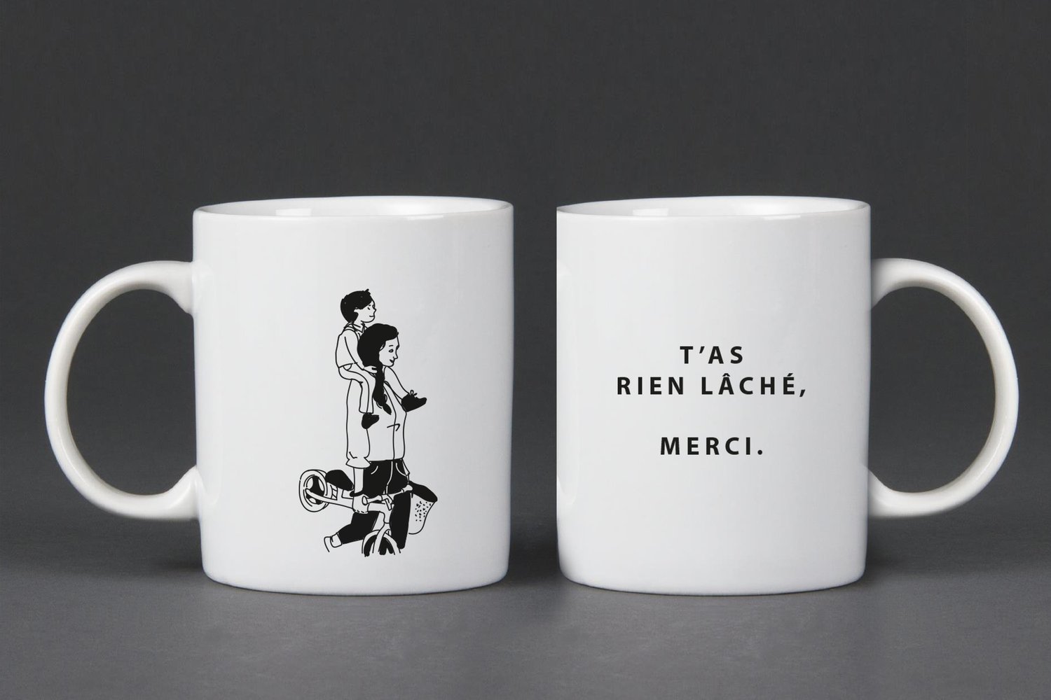SÉRIE DE MUGS GRAPHIQUES POUR REMERCIER CELLES ET CEUX QUI ONT TOUT DONNÉ POUR NOUS.